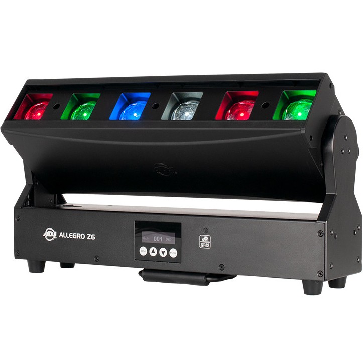 The ADJ Allegro Z6 is a linear fixture that features 6 lenses, motorized zoom and motorized tilt (220-degrees) on the X-axis. It's powered by six 30W Quad (4-IN-1) RGBW LEDs. Each LED's color may be controlled individually. The fixture's beam angle is adjustable between 3.5-degrees and 38-degrees.