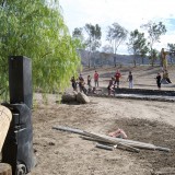 - Easy setup and break-down; system rolls away on wheels when done