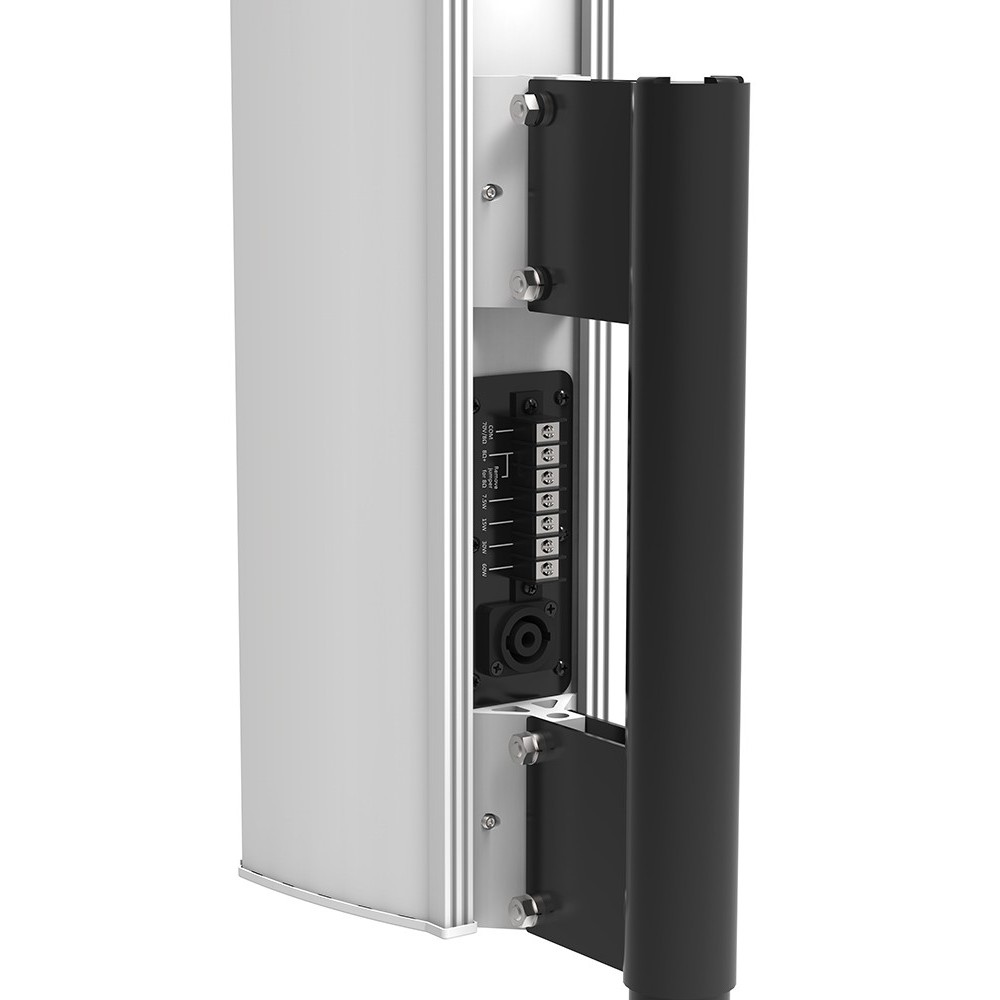 ALA's new transducer configuration accurately reproduces sound to the listener. It incorporates tightly-packed, high-frequency transducers and full-range drivers for full sound spectrum coverage. A dual-purpose integrated pole mount bracket enables the array to be wall mounted for fixed installations or used in portable applications coupled with an A-Line subwoofer.- Features