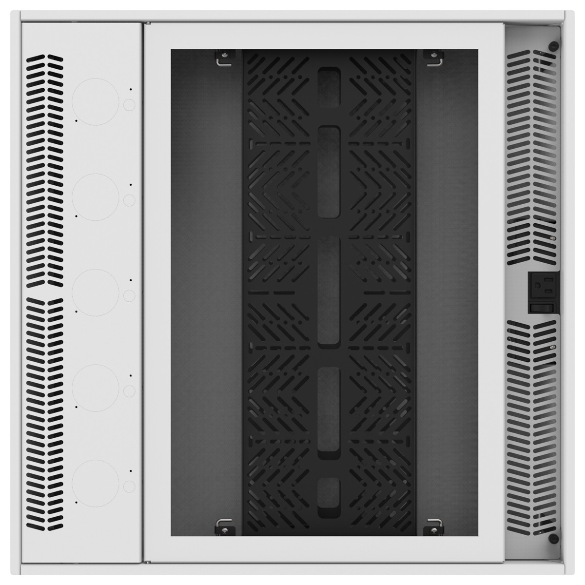 The CR222P-NR is built "Texas Tough" in AtlasIED's Texas-based manufacturing facility. Proudly made in America and built to last, 18AWG powder coated metal provides a strong and rigid assembly with decades of operational use. Another AtlasIED advantage, the cabinet side panels include four-(4) removable 4" square standard cover plates. There are two per side and each side has one cover plate with a single 11/2" knockout and the other plate with two double knockouts for 1/2" or 3/4" conduit connection. The provided cover plates can be replaced with an installer-provided custom plate with connectors such as an Ethernet jack, HDMI jack, NL4, XLR, RCA connectors and much more.