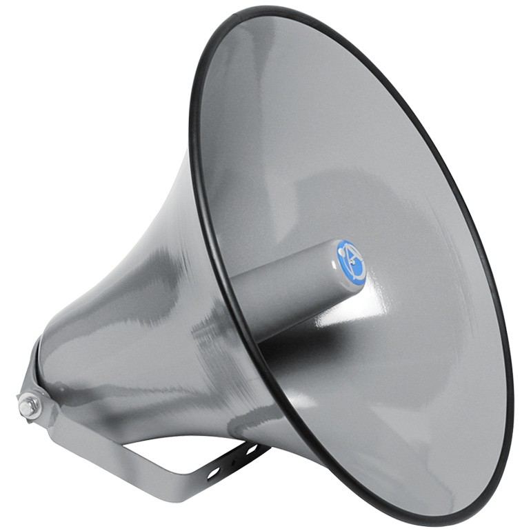The Atlas Sound DR-32 circular projector is equipped with a resonance damping ring for best response through an extended frequency range and has 95° uniform coverage. Weather-resistant units will accommodate Atlas Sound PD and SD Series compression drivers or any driver with standard 1.38" -18 male thread coupling. The integral "U-type" steel mounting bracket provides maximum directional aiming flexibility and enhances installation capability when used outdoors or in industrial environments. This rugged all-metal, exponentially-flared horns are finished in durable grey epoxy.