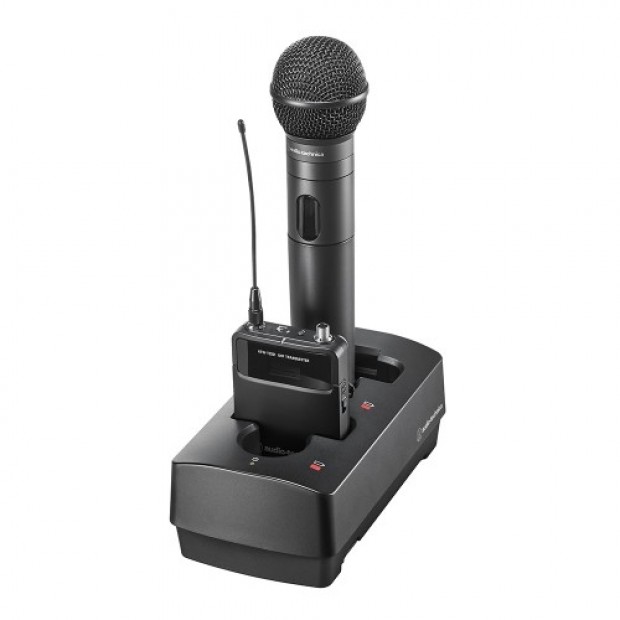 - Two-bay charging station for use with 3000 Series (fourth generation) handheld (ATW-T3202) and body-pack (ATW-T3201) transmitters