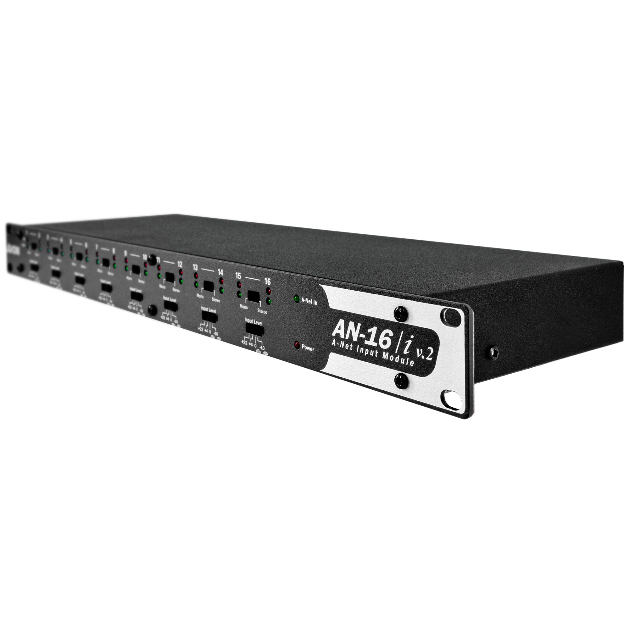 - Converts 16 line-level analog audio channels to a Pro16e A-Net digital stream