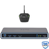 - Supports driverless, pass-through HDMI connectivity to a single in-room display, or to two monitors with USB video using DisplayLink USB graphics technology (requires installation of DisplayLink driver on laptop; supports Windows 7, 8, 8.1, and 10)