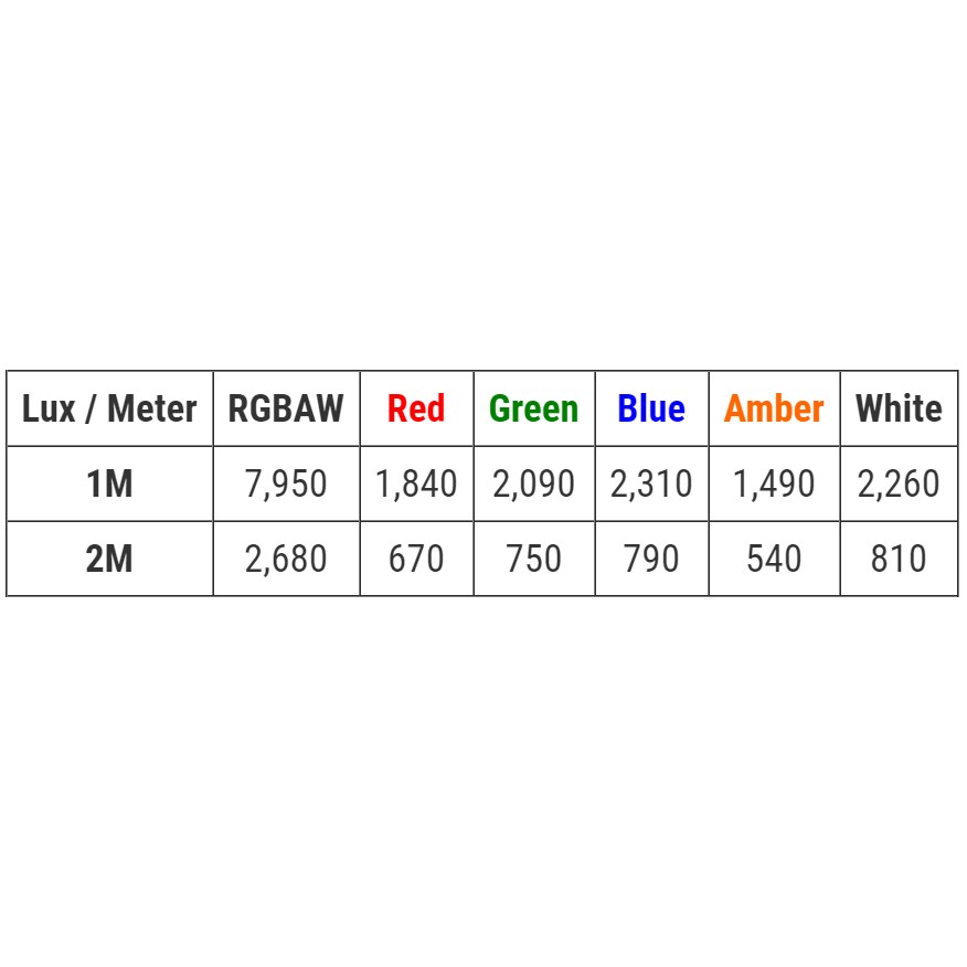 - RGBAW color mixing via 12x 15W 5-in-1 LEDs