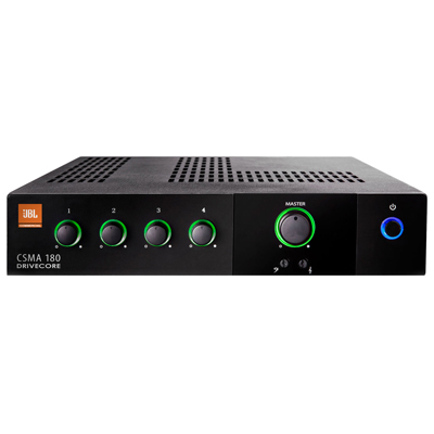 The JBL CSMA 180 is a 4 channel mixer/amplifier, a professional tool with a sleek industrial look that is designed and built for commercial sound applications.
