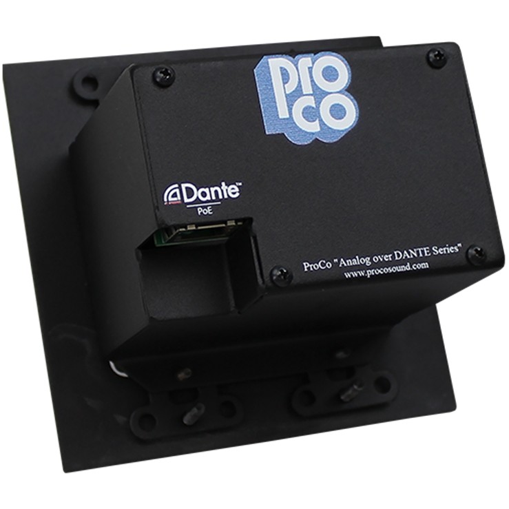 The AoDDP wallplates provide one RJ45 Dante input and four Neutrik® connectors for either inputs or outputs. Using our rugged aluminum extrusion, this ProCo® AoD wallplate can provide simple connection of analog equipment to a Dante® network and provide studio-quality, low-latency audio via the XLR connectors. Compatible with any Dante® ecosystem and provides line-level analog audio signal to output devices. AES67 compliant. The rugged enclosure also fits inside a standard 2 gang deep well J-Box for easy retrofit installations.