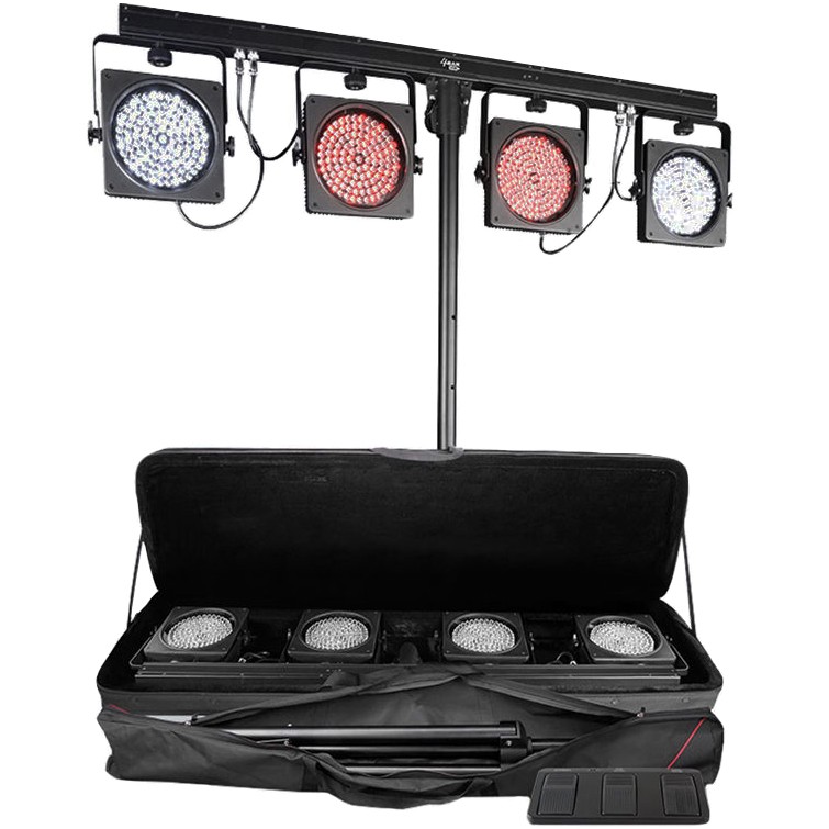 The 4BAR USB is a complete washlighting solution for mobile entertainers. D-Fi USB compatible for wireless master/slave or DMX control, it also includes a wireless footswitch that can control multiple units. Create synchronized light shows using built-in automated programs with the optional IRC-6 remote.