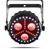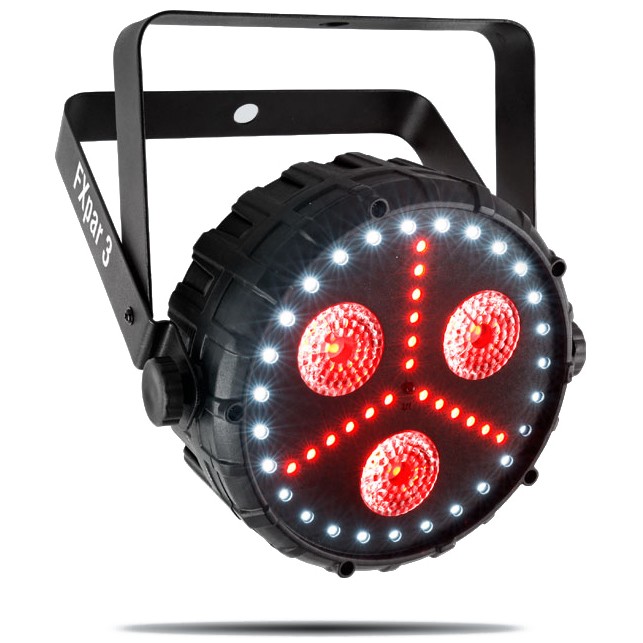 The CHAUVET DJ FXpar 3 is a compact effect par with multiple technologies in a single fixture. It includes three 8W Quad-color (RGB+UV) center LEDs, RGB SMD LED lights and SMD strobes. Separate control of these features makes creating breathtaking effects easy. FXpar 3 is compatible with IRC-6 for flexible control over all features and includes powerful sound-activated and automated programs.