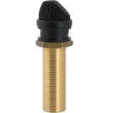 The electret condenser microphone has a cardioid polar pattern. It is constructed from robust high-quality brass with a low profile steel mesh top. The microphone is fitted with a Phantom Power Adaptor accepting 9 to 48 volts DC. The Phantom Power Adaptor also includes filters which will eliminate all GSM frequencies from 800-1200 MHz and is terminated with a male 3 pin XLR, Sensitivity -37dB +- 3dB @ 1Khz (0dB=1V/Pa), impedance 200 Ohms, total harmonic distortion (THD) at an operating level of 120dB is less than 1%. Also includes rubber isolators to minimize the transfer of mechanical noise from table, ceiling or panel. Finish: Satin Black.