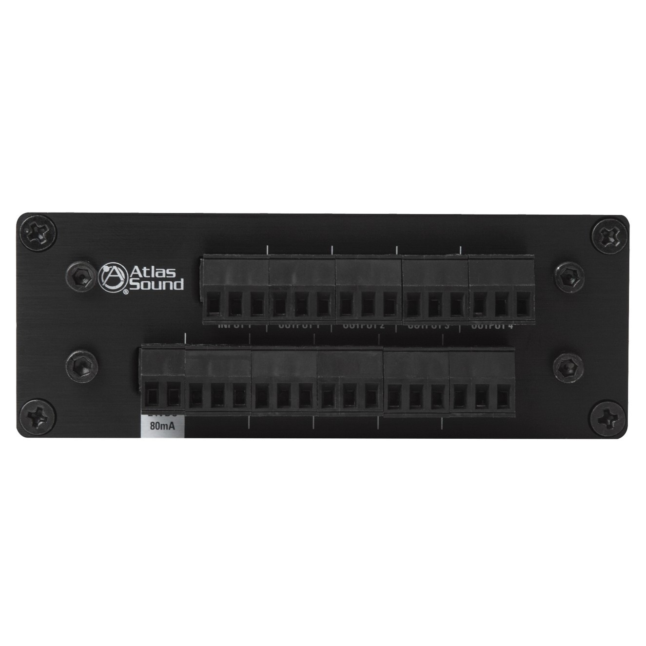 Isolation between outputs prevents crosstalk, removes miss matched input impedance concerns and allows for adjustable levels on each connected device. All I/O is via Phoenix style connectors for installation convenience and inputs may be easily paralleled for 1 in / 8 out configuration.