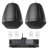 This restaurant sound system provides high-performance audio for high-end applications where sound drives the atmosphere. Equipped with two QSC AD-P.HALO 6.5" 200W integrated sub/sat all-in-one pendant loudspeaker systems, this setup offers powerful and consistent sound coverage. The Pure Resonance Audio MX84 4 zone 8-channel rack mount mic/line mixer allows flexible audio control across multiple zones, while the Pure Resonance Audio DA2240 dual-impedance 240W rack mount power amplifier ensures reliable power distribution. Additional components like the Pure Resonance Audio BTR1 Bluetooth wireless audio receiver and VC100W commercial volume controls provide versatile connectivity and user-friendly operation.