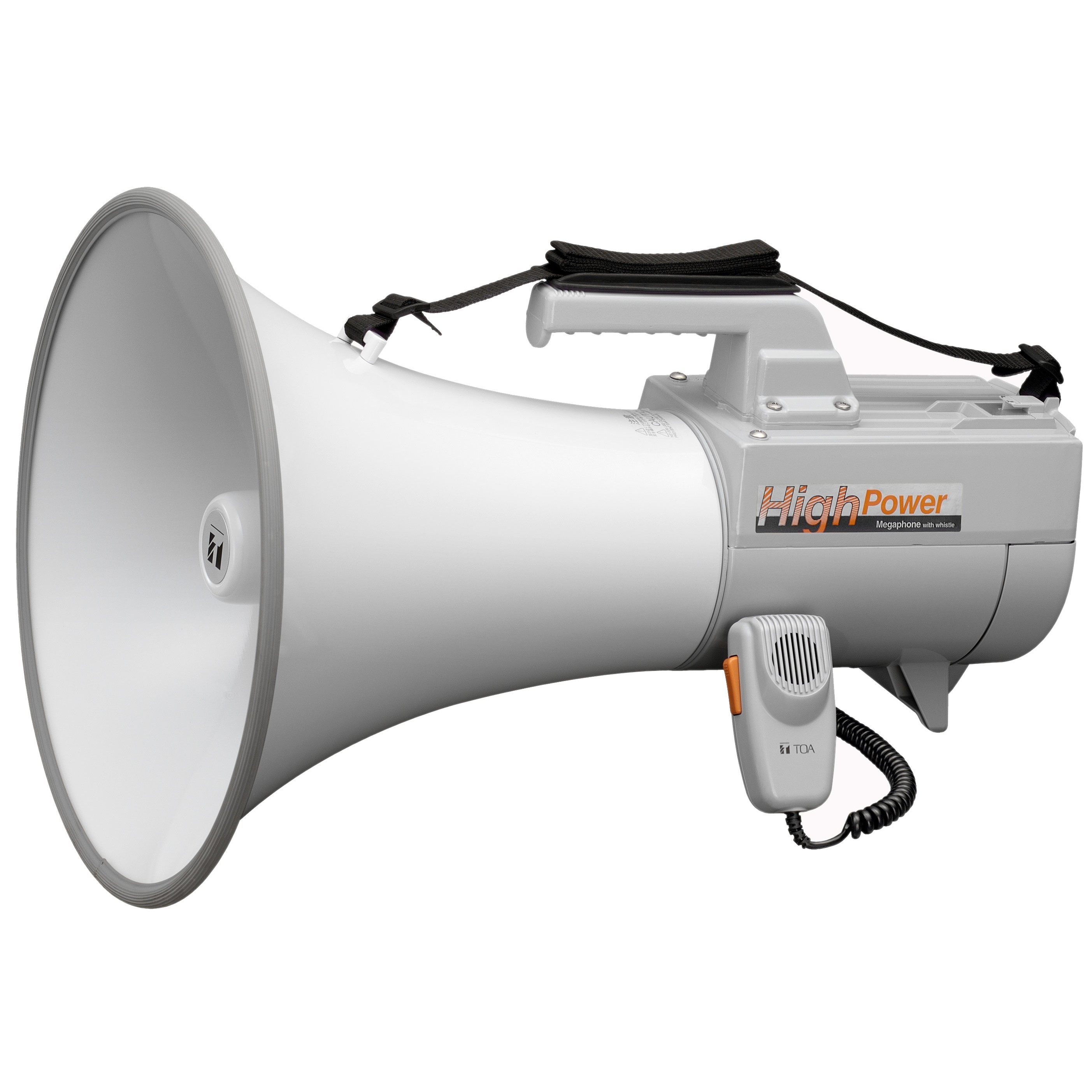 TOA portable power megaphones are available in different configurations to meet different user needs. Every model now has been treated for antibacterial properties to cope with use in multi-user environments. From light and compact configurations to high-performance shoulder-mounted types, TOA power megaphones offer exceptional reliability and performance. Models are available with resistance to water and humidity, meeting ISO splash-resistance guidelines. There are also other models for enhanced power output as well as a choice of a whistle or siren feature. The top-of-the-line shoulder types provide the greatest output power as well range, also incorporating status indicators as well as AUX input and ETX. mic input. In addition, wireless microphone connectivity is available on one model for more flexible use. Featuring rugged construction for speaker elements and horns, TOA power megaphones prove ideal for voice reinforcement in almost any situation.- Features
