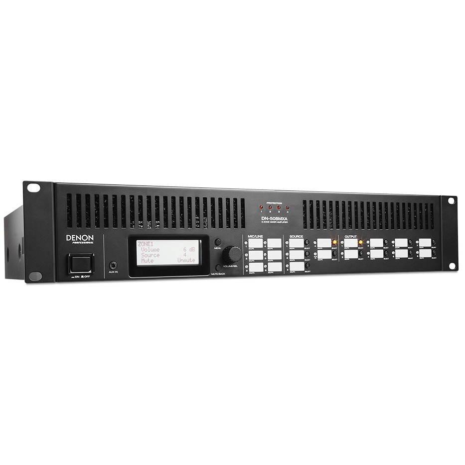 Typical applications include restaurants, hotels, museums, nightclubs, sports bars and large corporate offices. Both mixers have remote controllability via RS-232C and IP for the commercial installations. The DN-508MX and 508MXA also have several features dedicated for professional use such as a professional grade head-amp, MIC/LINE PAD, full BTL balanced outputs, 3-band EQ for inputs, 5-band EQ for outputs, Priority, Delay, Dynamics, system control application (Web remote), and scheduling function to operate automatically for optimum energy efficiency.