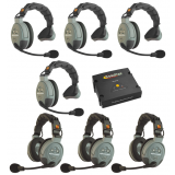The Eartec COMSTAR XT-7 Seven Person Wireless Intercom System is designed specifically for teams that need to communicate and still be able to work with their hands. These revolutionary intercom systems are not voice activated and there is no delay when transmitting. This system allows the users to talk simultaneously just like on a regular telephone within a 800 yard range. At the heart of each COMSTAR System is a signal relay called the Com-Center. This centralized base transceiver is both AC powered or battery powered for on-location use and is totally portable. Each Com-Center can accommodate up to 8 users in Full Duplex.
