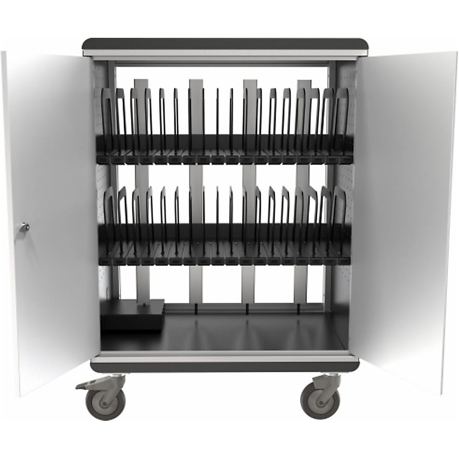 Capacity 32 tablets, chromebooks, or netbooks Exterior Keyed locking doors with ventilated powder-coated steel Input 100 - 125V, 2W +PE, 60Hz 12A Output 100 - 125V, 60Hz, 12A Cord Length 6ft Individual Tablet Compartment Dimensions (H x D) 8.85" (224.79 mm) x 13.18" (334.77 mm) Dimensions (H x W x D) 36.75" (933.45 mm) x 31.75" (806.45 mm) x 20.13" (511.3 mm) Shipping Weight 225 lbs (102.06 kg) - Documents