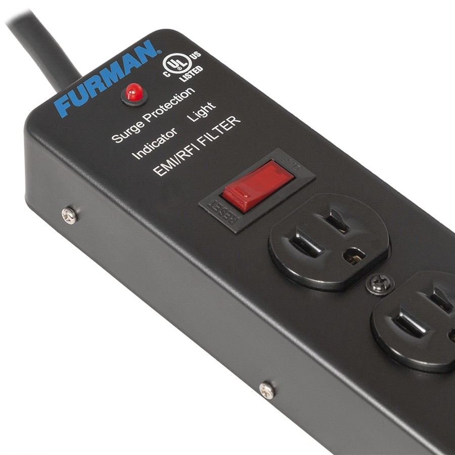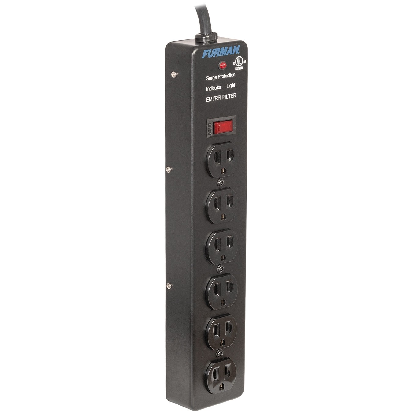 The SS-6 is a vertical 6-outlet steel power block with standard level surge protection, EMI/RFI filtration, heavy duty steel construction, and 15 ft. power cord.