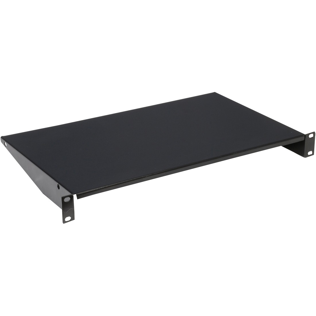 The Gator Cases GRW-SHELF1 1U utility shelf is 10" deep and flanged for rigidity.