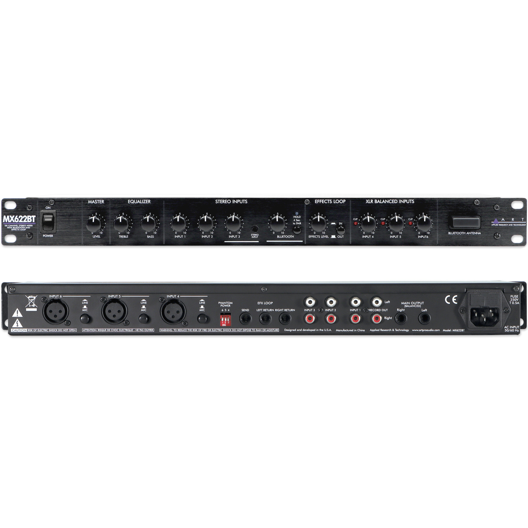 ART MX622BT 6-Channel Personal Stereo Mixer with Bluetooth, EQ and Effects Loop