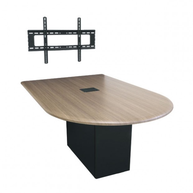Each Hub is comprised of a TechPed™ Technology Pedestal featuring rackmounting space, an integrated power strip, and Lever Lock accessories for small device mounting, a table top that includes an InteGreat™ table box with two HDMI cable retractors, display wall mount and additional power strip for use at the display. This meeting table comes with either an angle or bullet shape, with the length of your choice: 6 ft, 7 ft or 8 ft and a thermolaminate or high-pressure laminate finish. To match any decor there are over 50 colors to choose from, you can specify your color in the notes of your quote request or talk to a representative today.- Features