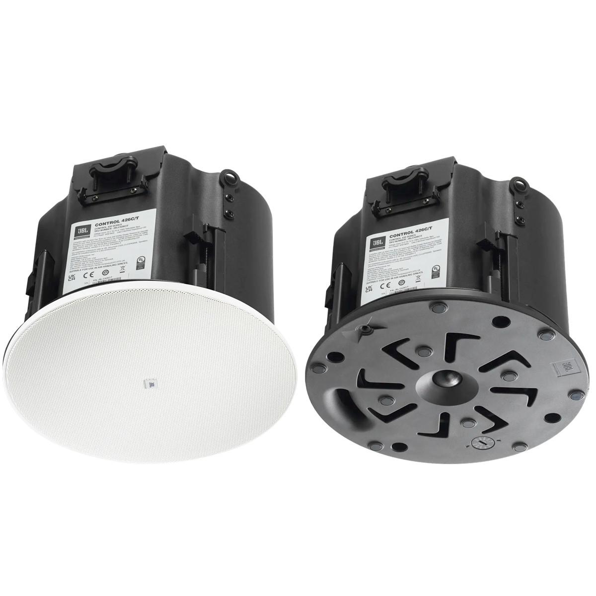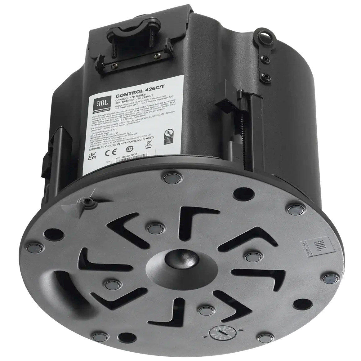 The JBL Control 426C/T-LS is a two-way coaxial ceiling loudspeaker, featuring a 6.5” woofer and integrated enclosure that is ideal for installation in most ceiling plenum spaces. Certified to the UL1480 Standard, the Control 426C/T-LS is suitable for life safety applications. Integrated CRBI™ technology provides 110° of consistent, full, rich sound to the listening area. A full-face magnetic grille blends seamlessly with modern decors and optional black and square grilles are available. Mechanical improvements include redesigned terminal covers with top and side cable entry ports and an extremely reliable new dogear design that works with a wide range of ceiling thicknesses. The JBL Control 426C/T-LS includes a transformer to support both 70V/100V and low impedance applications.