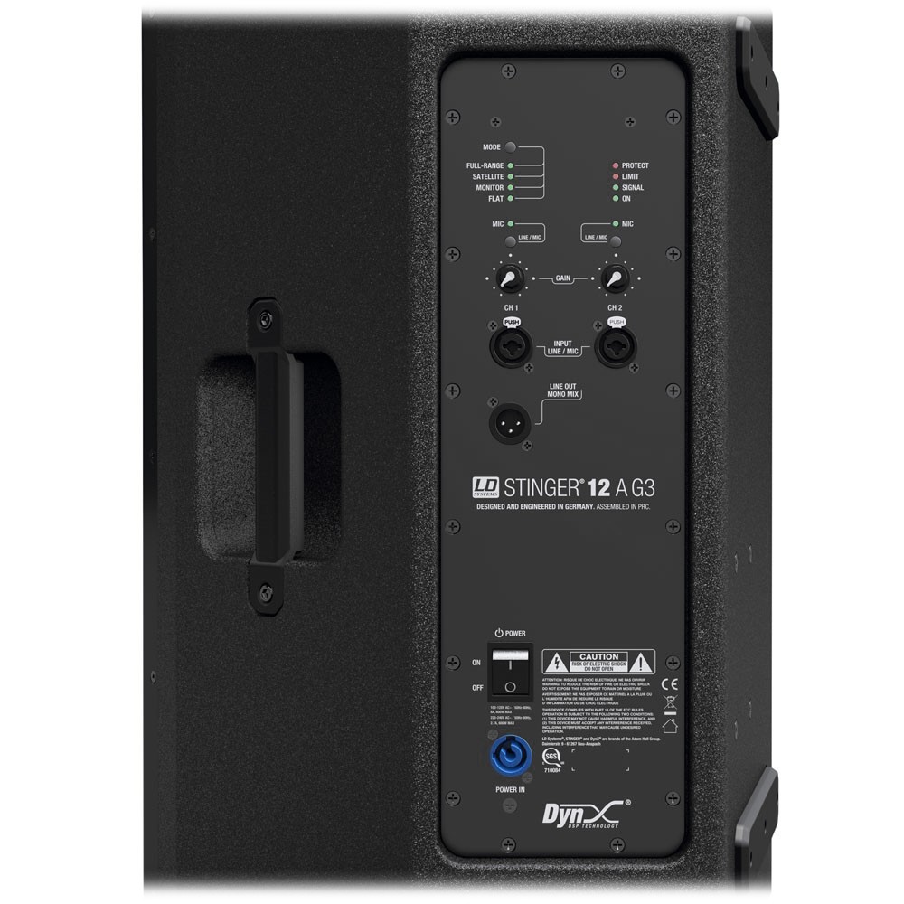 This highly professional 2-way active system is designed for absolute, long-term reliability. With its multi-functional bass reflex housing and finely tuned, user-friendly presets, the speakers are suitable as full-range, box, satellite and floor monitors. The Stinger® 12 A G3 is powered by a highly efficient Class-D amplifier with an impressive 500-watt continuous output. The specially developed 12" woofer and a BMS tweeter driver achieve a deep bass response and fresh, natural trebles. The wave guide of the tweeter has been developed using the Boundary Element Method (BEM), a numerical simulation of the sound radiation and dispersion. It reduces reflection from floors and ceilings and prevents sidelobe levels, thus achieving controlled and homogeneous dispersion. LD Systems' proprietary DynX® DSP technology means that the Stinger® 12 A G3 delivers perfect performance with maximum clarity and power under all conditions. The signal processing of the crossover function and the multi-band limiter achieve an optimal runtime and high freedom from distortion. Designed as an all-around workhorse, the housing of the speaker is made of robust birch plywood. An extremely resilient coating of polyurea offers exceptional robustness and durability. The features include a steel front grille, a dual-tilt stand attachment, flight points and ergonomic handles. The Stinger® 12 A G3 is a good value and attractive solution for professional sound systems, with extensive accessories that support usage on the stage and in fixed installations.