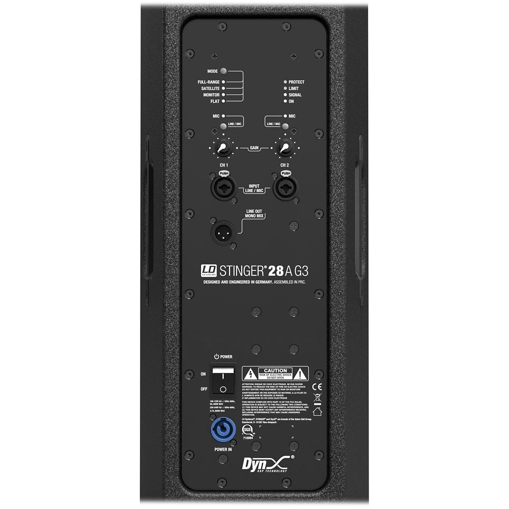 LD Systems' proprietary DynX® DSP technology means that the Stinger® 28 A G3 delivers perfect performance with maximum clarity and power under all conditions. The signal processing of the crossover function and the multi-band limiter achieve an optimal runtime and high freedom from distortion. Designed as an all-around workhorse, the housing of the speaker is made of robust birch plywood. An extremely resilient coating of polyurea offers exceptional robustness and durability. The features include a steel front grille, a dual-tilt stand attachment, flight points, and ergonomic handles. The Stinger® 28 A G3 is a good value and attractive solution for professional sound systems, with extensive accessories that support usage on the stage and in fixed installations.