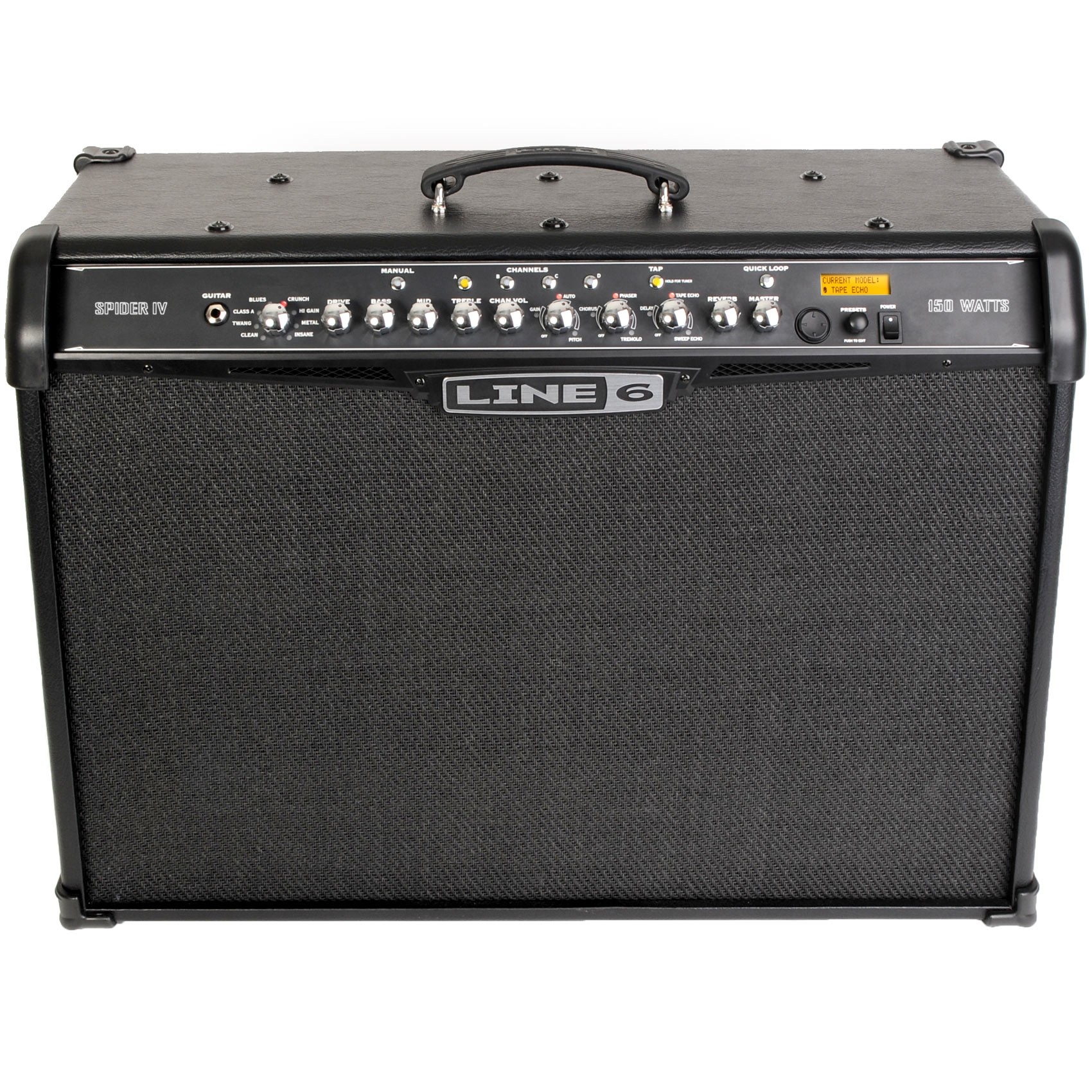 Spider IV 150 guitar amp boasts industry-leading Line 6 amp and FX modeling, dialed in tones and presets created by rock stars, and much more. Plug into 500+ presets. Over 300+ presets were hand-crafted by 50 guitarists and bands. Almost 200 presets are based on the tones of celebrated guitar tones. Create and save 64 user presets. 16 amp models deliver sparkling clean tones, syrupy drive tones, mid-gain crunch, high-gain distortions, and more. 20+ reverbs, delays, trems and more, plus Pitch Glide, Smart Harmony, and Quick Loop. FBV MkII foot controllers (not included) add effects and USB connectivity for updates/upgrades. 150 watts (stereo). 2x12" Celestion® Custom speaker. Three-quarter closed-back cabinet