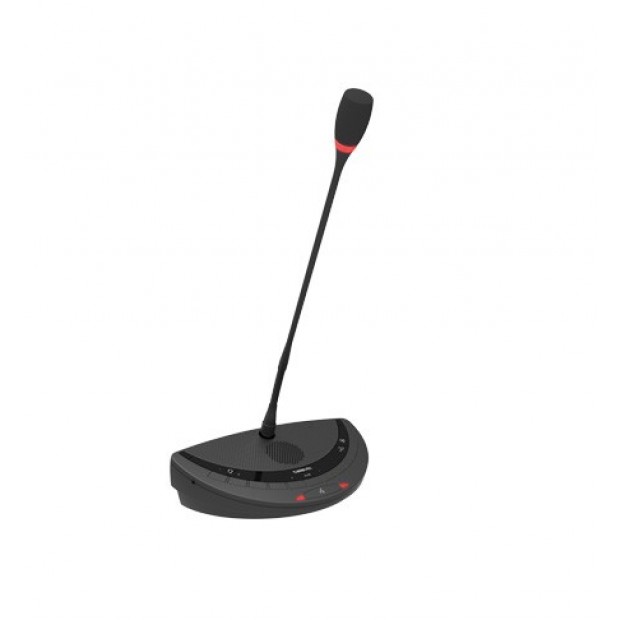 - Microphone On/Off or request-to-speak button with two status LEDs