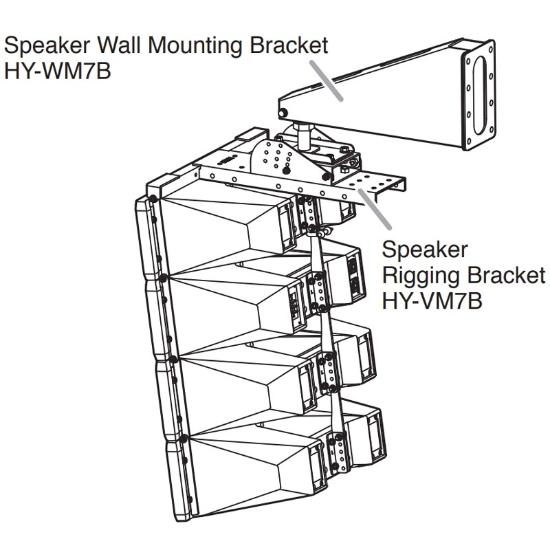 The HY-WM7BSET is intended for mounting the HX-7B speaker system to indoor walls by using the HY-WM7B together with the optional HY-VM7B Speaker Rigging Bracket.