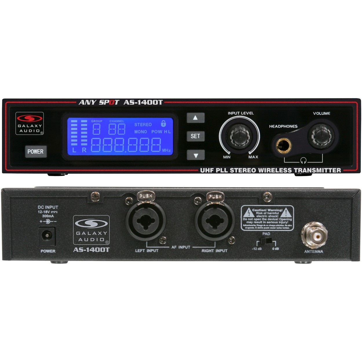 The AS-1400 is the latest addition to Galaxy Audio’s highly acclaimed line of Wireless Personal Monitors, offering high end features and performance at a very affordable price. The transmitter features stereo XLR/1/4" inputs, headphone output with volume control, input level control, and LCD display for channel and input level. The Receiver features Mixed Mono Mode for your own personal mix, volume, and an LCD display with channel, battery level, and RF level. Galaxy Audio’s new comfort EB4 premium earbuds feature titanium drivers, extended bass response, aluminum alloy construction, and now come standard with all WPM models. The AS-1400 is perfect for the working musician, House of Worship or any application requiring an affordable, reliable WPM system.
