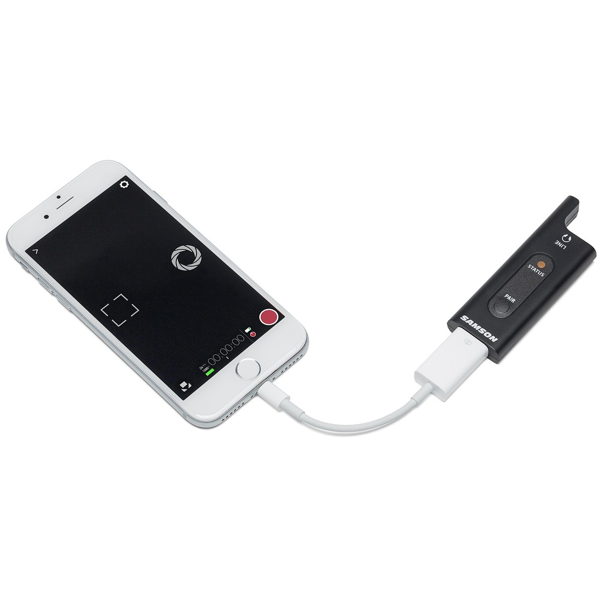 To connect to an iOS device, Apple's Lightning to USB Camera Adapter is needed. To connect to an Android device, a host OTG adapter is needed.