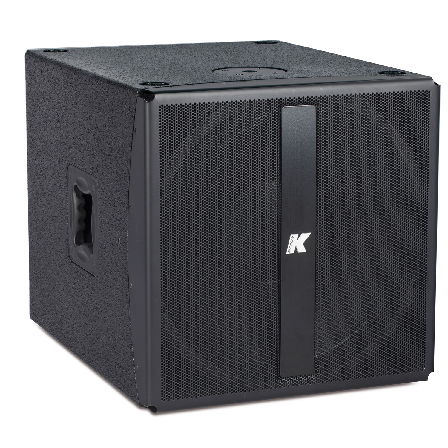 All DSP functions, including EQ can be controlled with remote managing software via USB or RS485, again conveniently on a standard XLR. There are 40 different DSP presets, specifically made by K-Array to optimize the system performance of the variety of device configuration available. In addition the user can also create, save and store his/her own personal presets on the KMT18 module. The unique four-corner port configuration gives symmetrical back loading to the speaker for extended bass response with very low distortion. This also gives incredible structural strength to the cabinet despite its light weight. Pocket handles and an M20 thread mount position for attaching mid-high speakers makes the KMT18 convenient to use and ideal for medium throw applications in theaters, concert halls and Audio/Video installations.