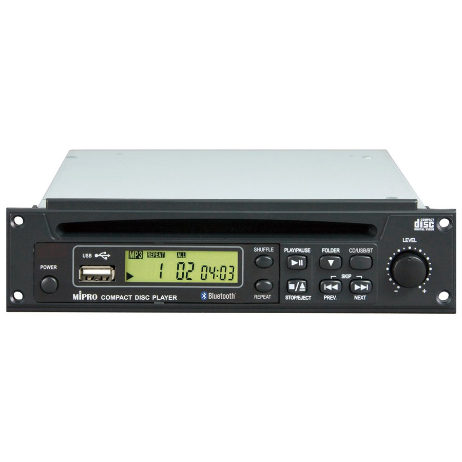 The MIPRO CDM-2B is a bluetooth capable CD/USB player module with a wireless remote control specifically for the MA-505, MA-705, MA-708 and MA-808 wireless portable PA systems. It features programmable tracks, random and repeat playback, selection and search, and plays all standard CDs.