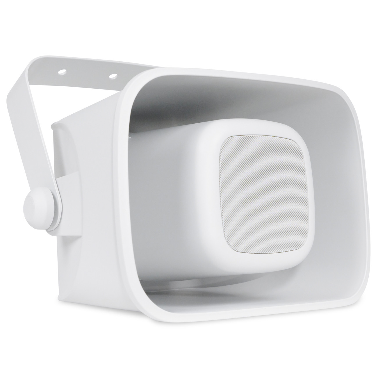 The Pure Resonance Audio H6 horn-loaded loudspeaker is a durable and reliable choice for public address systems in challenging environments. Constructed from polypropylene and calcium carbonate, it delivers high-quality paging and announcements over long distances, even in extreme conditions. With an IP66 rating and impact-resistant housing, the H6 is protected against dust, dirt, water, and environmental impacts. Ideal for settings like stadiums, schools, arenas, parks, and factories, it provides clear speech with power taps up to 60 watts and a wide 90° x 90° coverage angle. Featuring a 6.5" woofer and a 1" tweeter, it offers high-output sound with a frequency response of 120Hz - 18kHz and 93 dB SPL sensitivity. The built-in 60W 70V/100V transformer and heavy-duty mounting bracket ensure flexible, secure installation, making the H6 a practical solution for various public address applications.