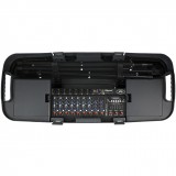 The carrying case provides storage for everything needed for sound, including plenty of room for optional accessories such as microphones and cables. In addition to the included folding speaker stand, the case even includes luggage style wheels to roll the entire system away. No heavy lifting, just heavy audio!