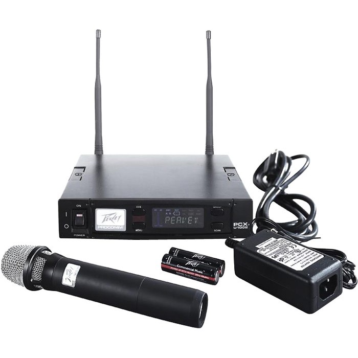 The Peavey PCX U-1002 Handheld Wireless System features automatic channel scanning and control for user-friendly operation. The Pro Comm® PCX U-1002 employs AutoScan technology, which allows it to automatically search for non-interfering channels to resolve abrupt changes in frequency and maximize your wireless system performance. In addition to AutoScan on the receiver, the transmitter features CCS (Channel Control System), which sets the channel of the transmitter rapidly and precisely. A handheld, lightweight magnesium belt-pack transmitter utilizes an LCD that displays channel and battery status and group information. The compact PCX U-1002 receiver occupies one half-rack-space, includes XLR and 1/4" outputs and features a color LCD panel displaying function statuses.