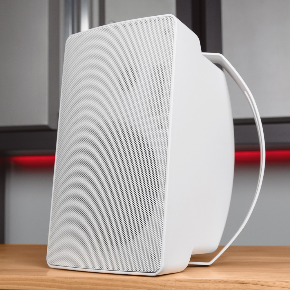 The S6W 70-volt outdoor surface-mount speaker is perfect for background-to-foreground level music, paging, public address, and general-purpose audio in restaurants, bars, cafes, hotels, hospitality venues, boutiques, shops, retail stores, fitness gyms, washrooms, shower rooms, cleanrooms, parks, schools, classrooms, training rooms, conference rooms, as well as corporate AV or any commercial environment in need of high-end sound. For the ultimate convenience in commercial audio distributed sound systems, the S6W back panel features a built-in, easy-to-access 70-volt and 100-volt transformer tap with an 8-ohm bypass and Phoenix Euroblock 4-pin screw terminal connector. Installation is quick and easy, and the 180-degree bracket for surface mounting on walls, under awnings, overhangs, press boxes, and more are included.