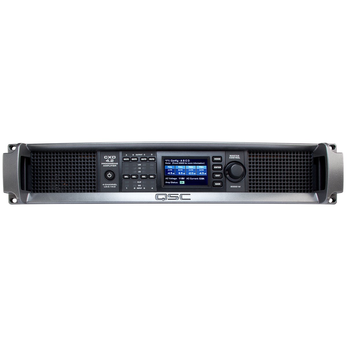 CXD4.2 amplifier use QSC’s next generation class-D power amp design in combination with a custom power stage utilizing a new output device. These purpose built MOSFET devices provide high voltage operation without needing a full bridge output and offer better audio quality and thermal performance due to co-location of the semiconductors.