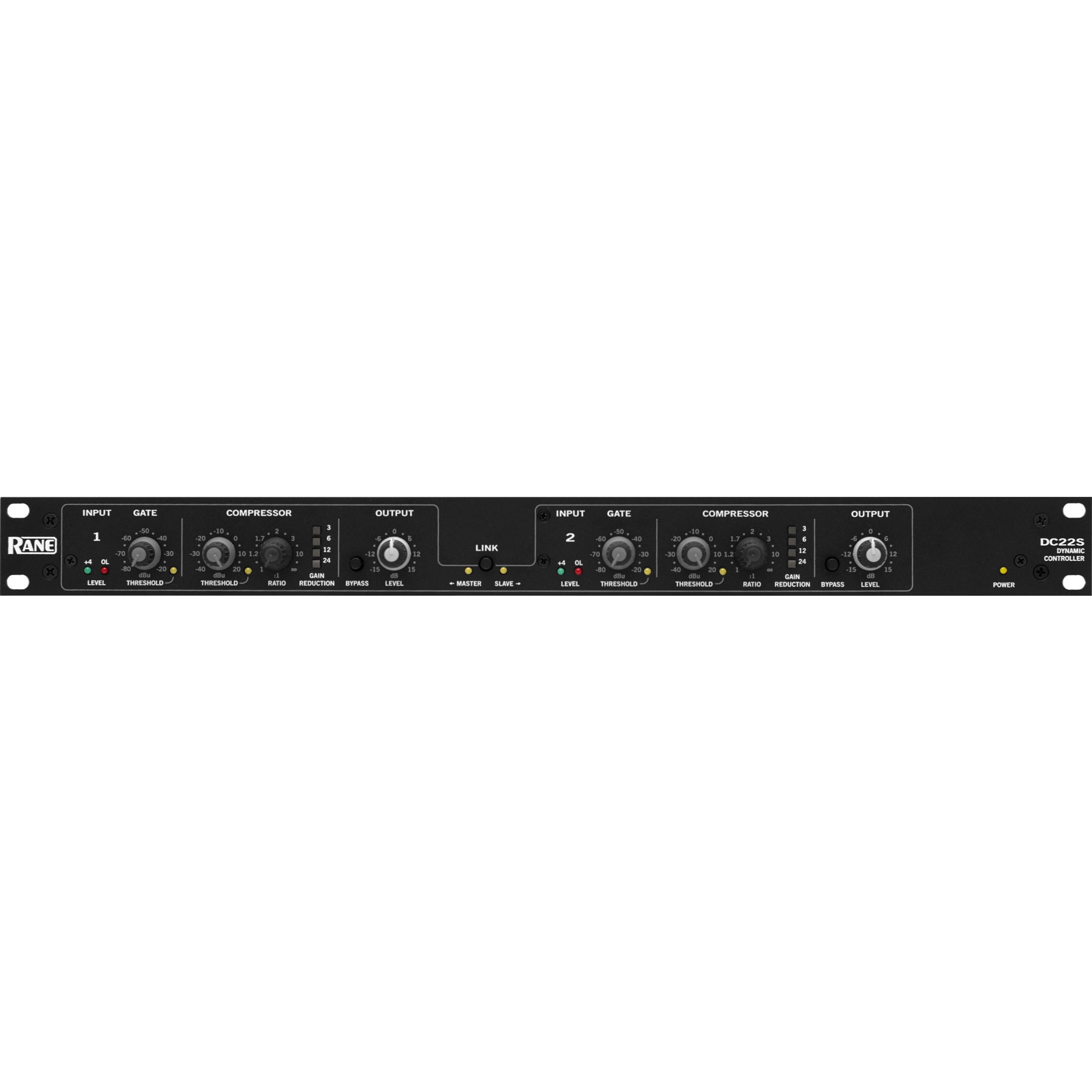 A cure for compression confusion is here. Quit guessing and anguishing over proper compressor and gate settings. Get on with what is important, your work. Rane has created a compressor gate using high quality log rms detectors and Voltage Controlled Amplifiers (VCAs). The DC22S combines quality compression and gate functions with simplicity. No more compression headache!