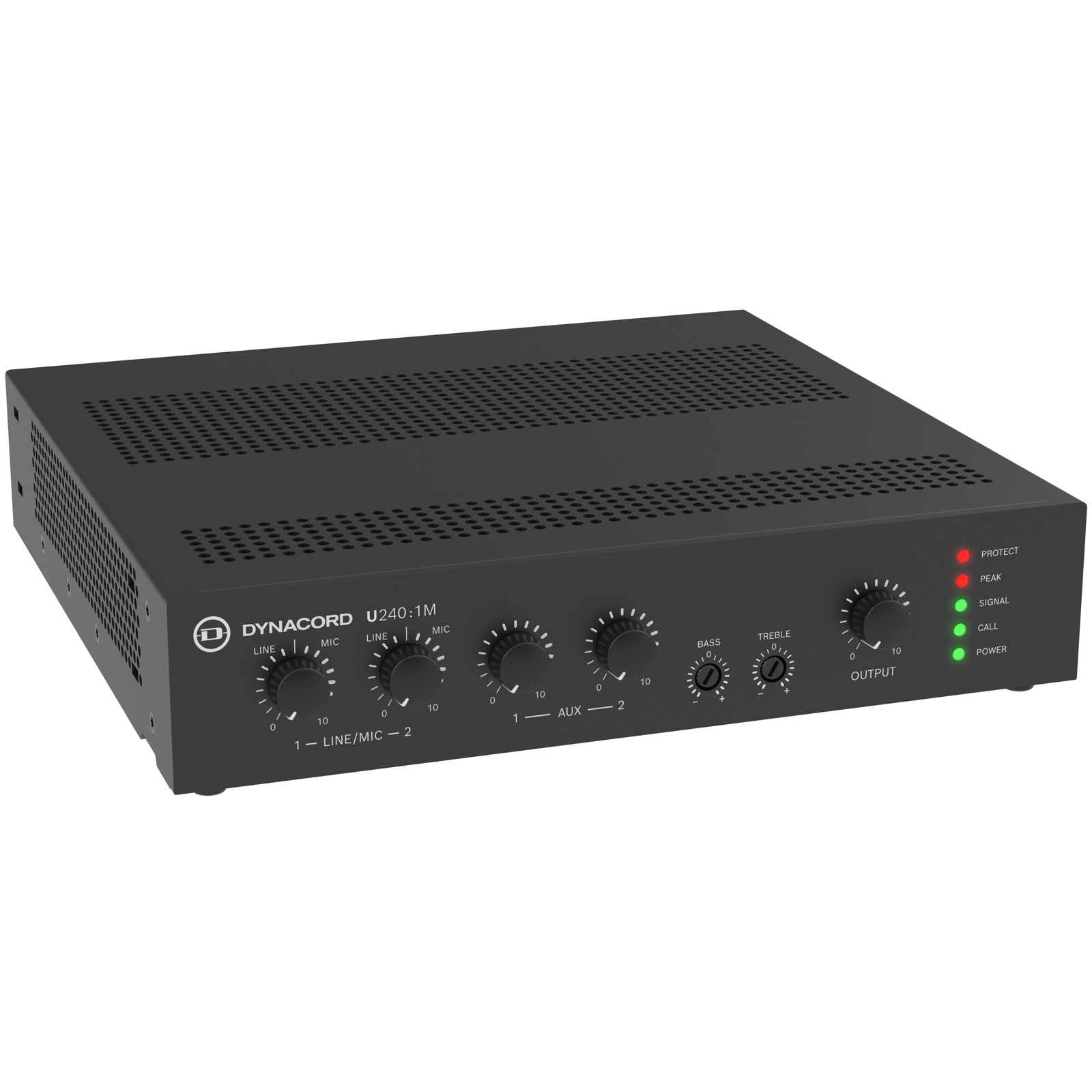 The Dynacord U240:1M is a compact, 240W single-channel mixer amplifier built for high-quality background music in medium commercial installations. Its space-saving design allows flexible mounting without compromising performance for day-to-day use. Offering dependable power and simple operation, it features intuitive volume control, multiple input options, and dedicated bass and treble adjustments for precise audio tuning.