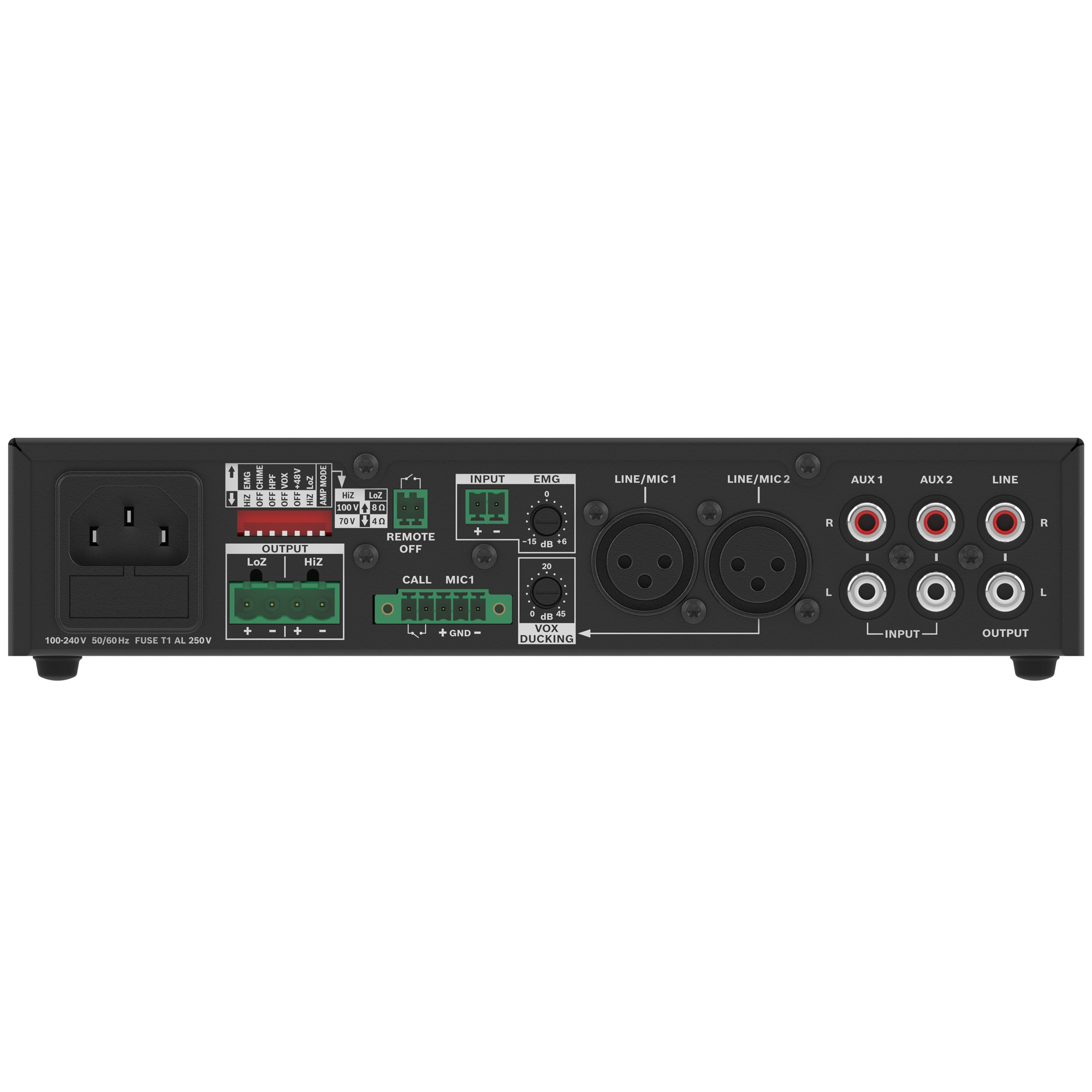 - 240W single-channel mixer amplifier for medium commercial audio installations