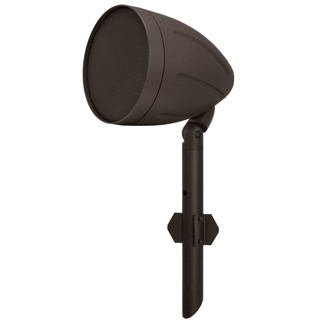 The Periscape 6 gives you an attractive, discreet way to distribute music and paging throughout an outdoor setting. This 6", 2-way speaker is fully weatherproof and is easily installed via a spike mount. Applications include outdoor living spaces, hotel pool areas, courtyards, outdoor malls, or outdoor seating areas for restaurants or cafes. Systems may be configured with any number of Periscape speakers, with a minimum suggested complement of 4 Periscape units and one Subscape subwoofer; additional subwoofers are recommended for installations using more than 8 Periscape speakers. Escape speakers are available in Brown. All models have 70V transformers with tap settings for 70.7 or 100 V operation; a transformer bypass setting allows operation in 8 ohm direct mode.