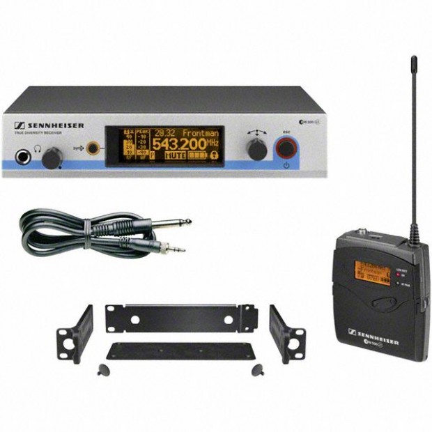 The Senneheiser ew 572 G3 is a wireless instrument set with cable emulator and silent configuration modus: EM 500 G3 true diversity receiver, SK 500 G3 bodypack transmitter, and CI 1 instrument cable. It is remote-controllable via a "Wireless Systems Manager".