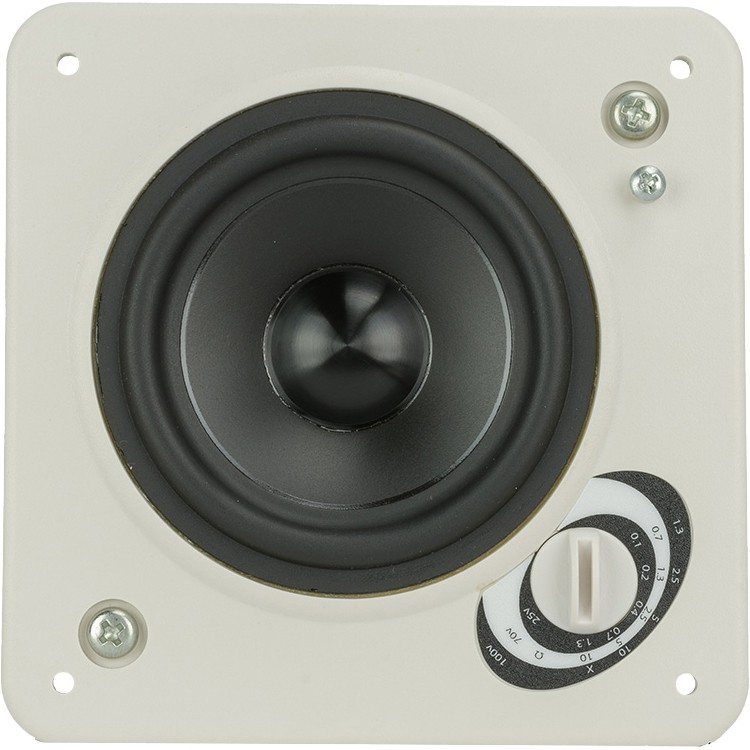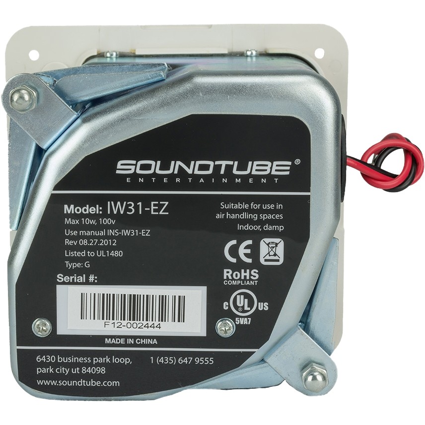 The IW31-EZ is a premium full-range 3-inch in-wall speaker for applications requiring 8 ohm or distributed audio solutions. The IW31-EZ incorporates a low profile grille with a total visible footprint of a 5" square and an integrated back can and driver design for ultra-compact installations in wall plates. The speaker includes a rapid installation, blind-mount fixed-wing mounting mechanism with constant tension design affixing to wall thicknesses ranging from 0.1" (2.5 mm) to 1.5" (38.1 mm). The in-wall speaker includes a six-position tap switch with a transformer bypass position. Mounting hardware is included and features a fast and secure constant tension Speed Wing™ mounting system. All components in the IW31-EZ are completely weatherized for indoor and outdoor applications. Conduit connector, paint mask, and wire nuts are included.
