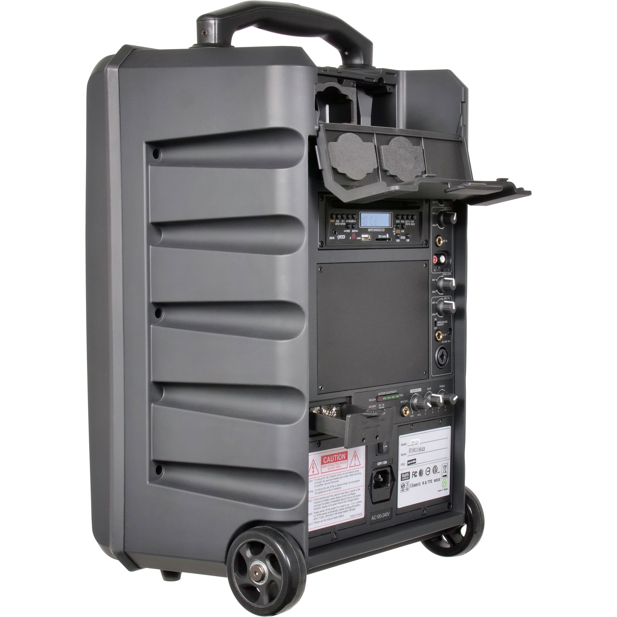 Frequency Range 540 - 570 MHz Power Output 120W Power Rechargeable Battery Speaker Dimensions (H x W x D) 19.7" (500.38 mm) x 12.6" (320.04 mm) x 11.4" (289.56 mm) Weight 34 lbs (15.42 kg) - Documents
