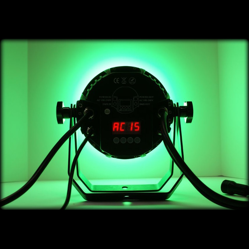 - Astounding RGBW color mixing via 18x 10W Red/Green/Blue/White “4-in-1” LEDs