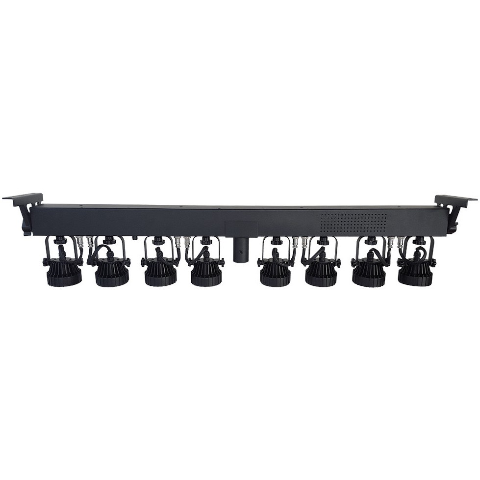 - 8 fixtures, each with 3 15W 6-in-1 RGBAW+UV LEDs, 100,000 hours