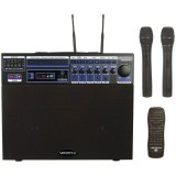 - Built-in wireless mic system with 2 hand held mics included