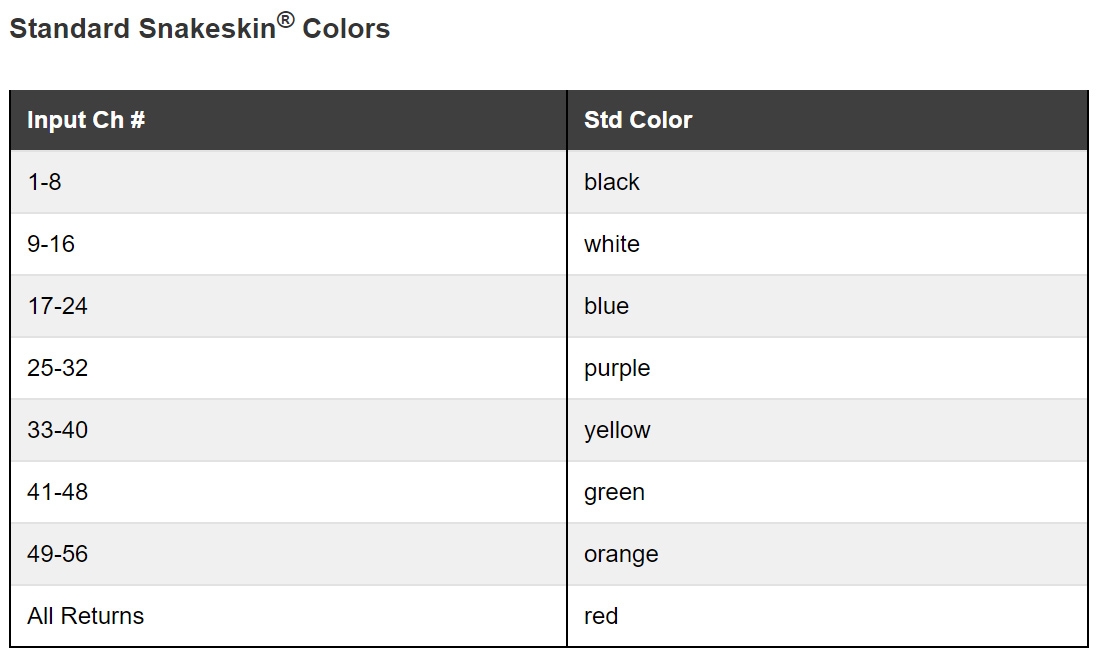 Available with traditional "Whirlwind Blue" multipair cable or Black upon request.Standard fanout lengths are: